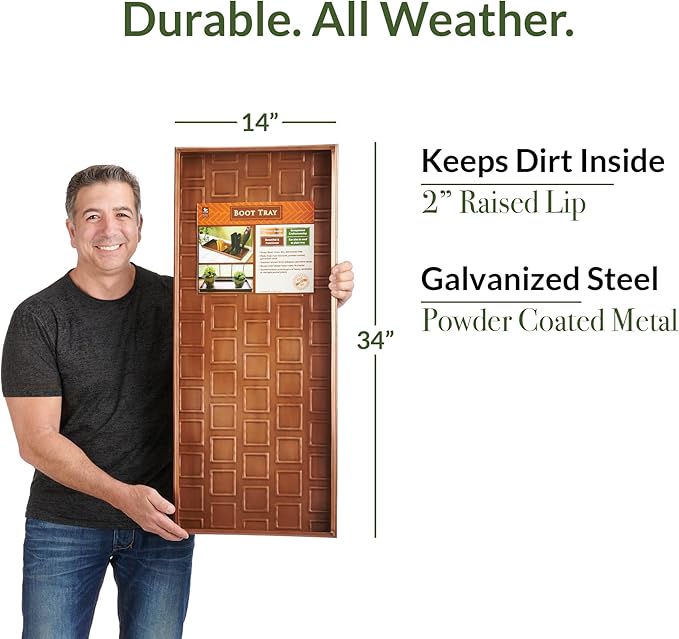 Good Directions Large Boot Tray, Squares Multi-Purpose All Weather Decorative Boot Tray, Shoes, Plants, Garage, Patio Door, Pet Bowls, 34 inch Entry Indoor Shoe Tray, Copper Finish