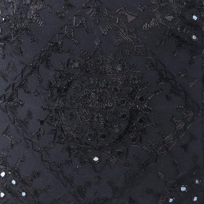 Eyes of India Embroidered Decorative Boho Throw Pillow Cover with Mirrors, Handmade Bohemian Accent Cushion Case for Sofa Couch Bedroom Living Room (Black, 16" x 16")