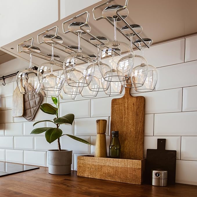 - Each single rows stemware organizer to hold items, 2 pack.