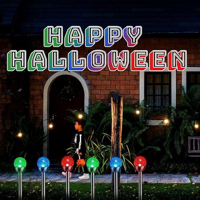 GIGALUMI Solar Outdoor, Cracked Glass Ball Solar Garden Lights, Color Changing Lights Outdoor,Garden LED for Path, Patio, Yard, 3 Pack Pathway