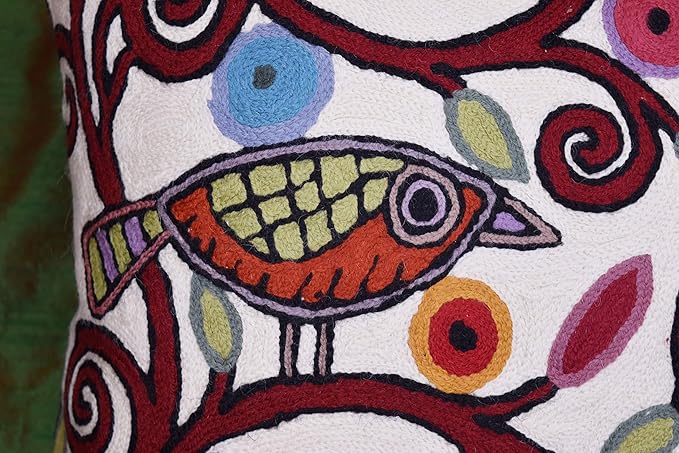 - 🌿 TREE OF LIFE HAND-EMBROIDERED PILLOW COVER: Immerse your decor in the allure of nature with these one-of-a-kind decorative accent pillow covers. Meticulously hand-embroidered in soft wool, each stitch tells a story crafted by skilled artisans, making these pillows extraordinary showpieces for your home. Explore the exquisite chain-stitch hand embroidery up close, unveiling the mastery of these artisans covering the entire front of the suzani floral pillow.