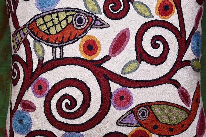 - 🦢 DYNAMIC COLORS AND MOTIF DESIGN: Enliven your space with the charm of Birds Floral tree of Life toss pillow covers. These hand-embroidered treasures seamlessly blend artistic elements, creating a harmonious design and an air of sophistication. Pillow insert not included, showcasing only the cover for sale. Featuring a zipper closure on the back, the pillow cover size is 18 x 18" (45 x 45 cms). With a non-reversible design and backing in canvas, these pillows redefine your decor.