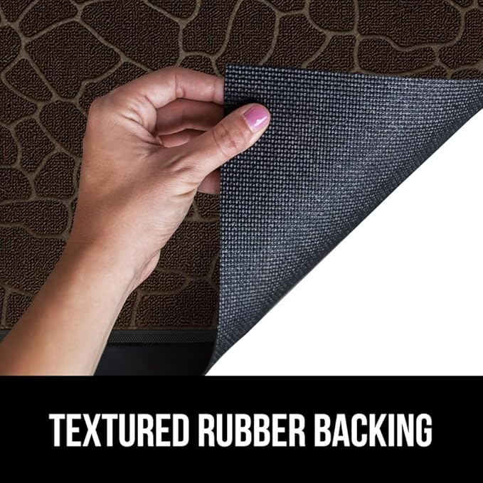 GORILLA GRIP 100% Waterproof All-Season WeatherMax Doormat, US Designed Natural Rubber, Stain and Fade Resistant, Low Profile Indoor Outdoor Door Mats, Easy Clean Patio Mat, 17x29, Dark Brown Pebble