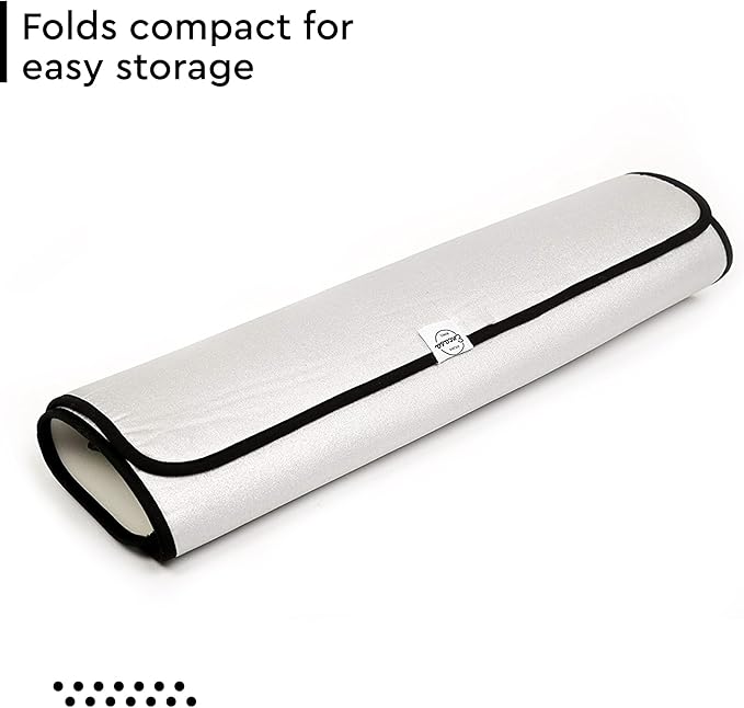 Encasa Homes Ironing Mat/Pad - Metallic Silver (Small 28"x20") with 5mm Foam Padding & Silicone Iron Rest for Steam Pressing on Tabletop or Bed - Heat Reflective, Portable, Quilting