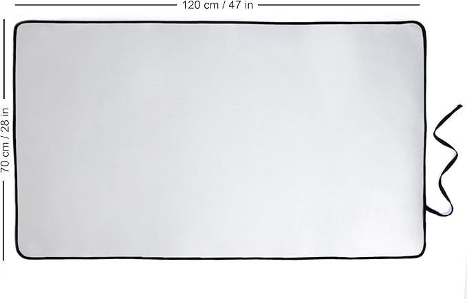 - SIZE: Large size (48"x28") Ironing Mat for use on Dining Table and Bed. Easily foldable for storage. The width is almost double of most Ironing Boards, so this allows convenient ironing of Large Garments like Gowns, Dresses & Trousers.