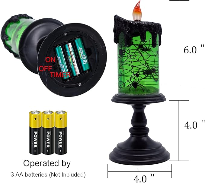 - Spinning Water and Glitter: Once you turn on the spider snow globe candle light, the candle top wick and inner light will light up, then the motor start to swirling the glitters and water keep spinning until you turn off them.