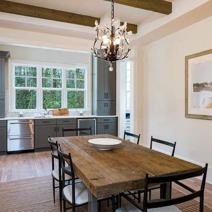 - ARTIST DESIGN: Black crystal chandelier use 5 branches with crystals design to increase the line sense of fixture, beautiful shape and strong artistic design give you a unique choice,use transparent glass crystals to capture and reflect the light of the bulb. Black, Gold two colors for optional, sparking and stunning crystal to created a warm and soft atmosphere.