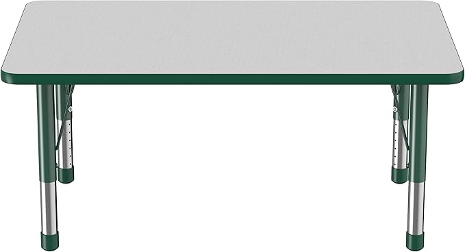 FDP Rectangle Activity School and Classroom Kids Table (30 x 48 inch), Chunky Toddler Legs, Adjustable Height 15-24 inches - Gray Top and Green Edge