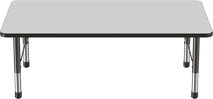 FDP Rectangle Activity School and Classroom Kids Table (36 x 60 inch), Toddler Leg, Adjustable Height 15-24 inches - Gray Top and Black Edge