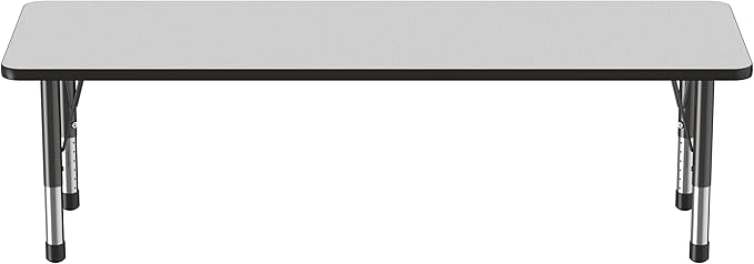 FDP Rectangle Activity School and Classroom Kids Table (24 x 72 inch), Chunky Toddler Legs, Adjustable Table Height 15-24 inches - Gray Top and Black Edge
