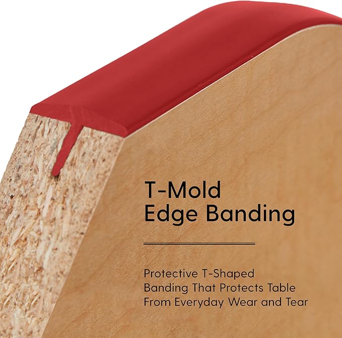 FDP Rectangle Activity School and Classroom Kids Table (24 x 36 inch), Chunky Toddler Leg, Adjustable Height 15-24 inches - Maple Top and Red Edge