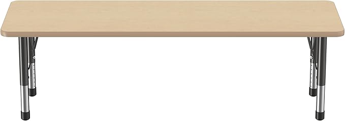 FDP Rectangle Activity School and Classroom Kids Table (24 x 72 inch), Chunky Toddler Legs, Adjustable Table Height 15-24 inches - Maple Top and Maple Edge