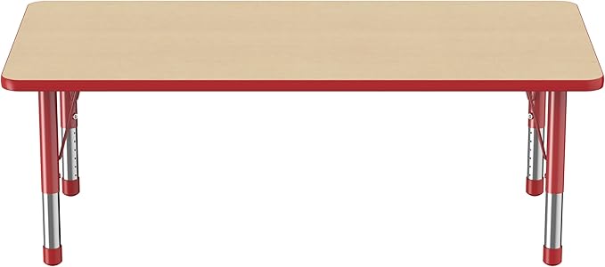 Factory Direct Partners FDP Rectangle Activity School and Classroom Kids Table (30 x 60 inch), Toddler Legs, Adjustable Height 15-24 inches - Maple Top and Red Edge