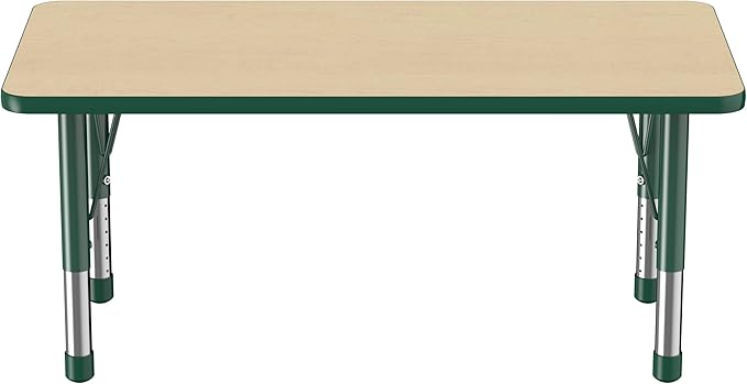 FDP Rectangle Activity School and Kids Classroom Table (24 x 48 inch), Toddler Legs, Adjustable Height 15-24 inches - Maple Top and Green Edge