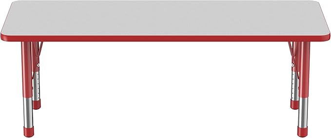 FDP Rectangle Activity School and Classroom Kids Table (24 x 60 inch), Chunky Toddler Legs, Adjustable Height 15-24 inches - Gray Top and Red Edge