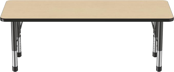 FDP Rectangle Activity School and Classroom Kids Table (24 x 60 inch), Chunky Toddler Legs, Adjustable Height 15-24 inches - Maple Top and Black Edge