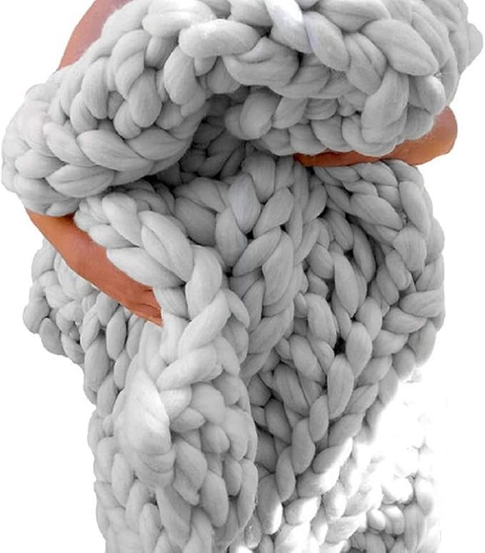 Chunky Knit Blanket Soft Handmade Knitting Throw for Bedroom Sofa Decor Super(Light Gray 47"x60")