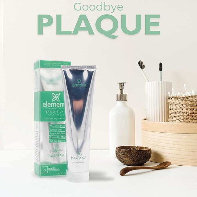 Elementa Silver Non-Foaming Toothpaste Wintermint Flavor | 5 in 1 Teeth Whitening Gel 4 Fl oz | Dentist Formulated All Natural | Professional Whitening Gel | Fluoride Free | Fresh Breath
