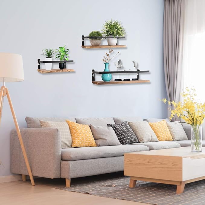 - 【NATURAL WOOD】: These farmhouse floating shelves are made from highly durable pine wood, ultra-thick 0.7’’and solid.after High temperature carbonization process,it keep the rustic style but also achieved anti-corrosion and moisture proof !guaranteed to withstand the test of time without the risk of corrosion or damage.NO PAINT.
