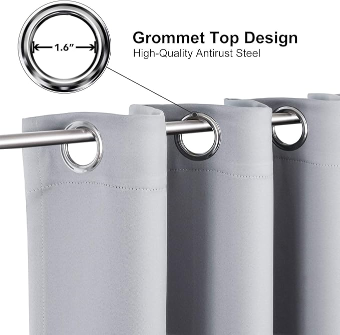 - SET DETAILS: 2 panels per package. Each panel measures 52 inch wide by 84 inch long with 8 silver metal grommets (1.6 inch inner diameter) on top, easy to install and slide.