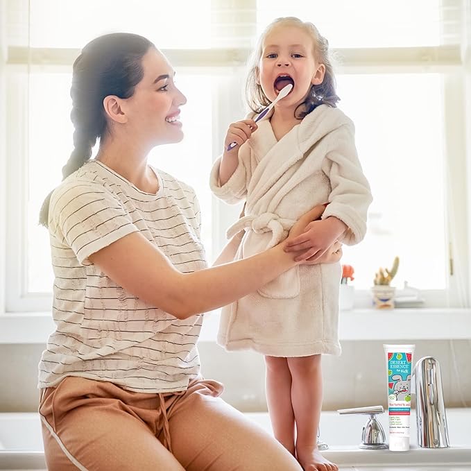 Desert Essence, Green Apple Watermelon Toothpaste Kids Gel, 4.7 oz. - Safe to Swallow, Fluoride Free, SLS Free, Gluten-Free, Vegan, Plant Powered Formula, Great Tasting, Removes Plaque and Buildup
