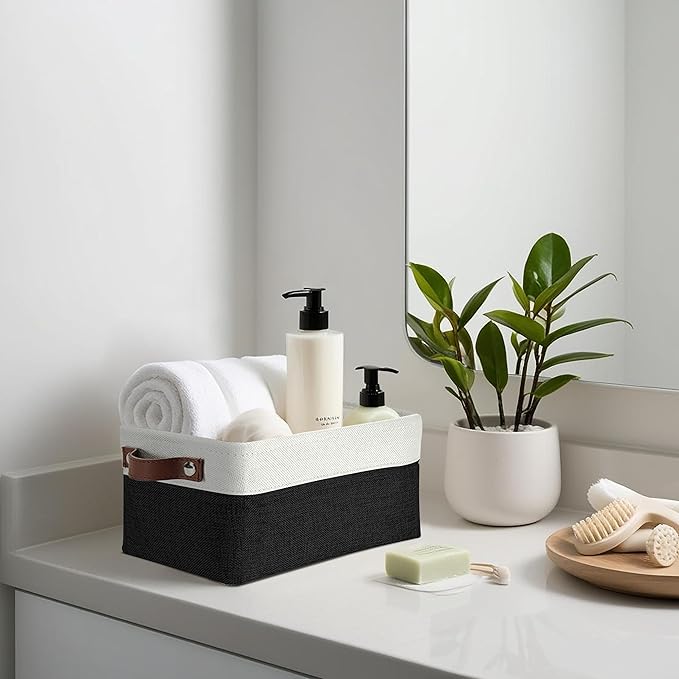 DECOMOMO Small Storage Basket, Closet Storage Bins, Baskets for Organizing Shelves (Black & White, Small - 6 Pack)