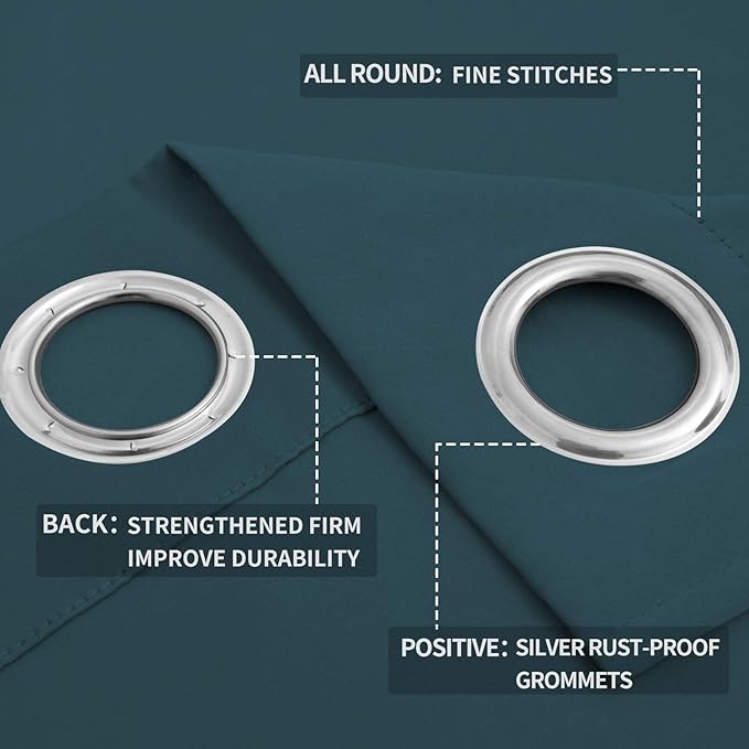 - Easy to Install: Each curtain panel has 8 silver metal grommets on top.Each grommet inner diameter is 1.6 inch, fits easily with standard curtain rods.Easy to hang, and slide smoothly. Perfect for office, bedroom, living room.