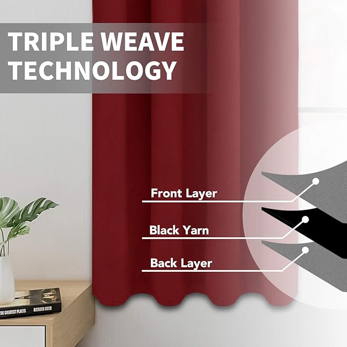 Easy-Going Blackout Curtains for Bedroom, Solid Thermal Insulated Grommet and Noise Reduction Window Drapes, Room Darkening Curtains for Living Room, 2 Panels (52x46 in,Christmas Red)