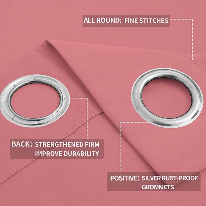 Easy-Going Blackout Curtains for Bedroom, Solid Thermal Insulated Grommet and Noise Reduction Window Drapes, Room Darkening Curtains for Living Room, 2 Panels (52x46 in,Pink)