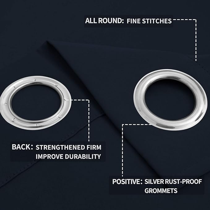 - Easy to Install: Each curtain panel has 8 silver metal grommets on top.Each grommet inner diameter is 1.6 inch, fits easily with standard curtain rods.Easy to hang, and slide smoothly. Perfect for office, bedroom, living room.