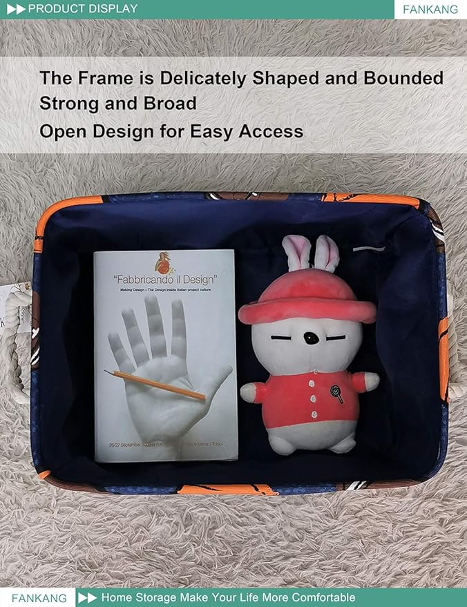 FANKANG Rectangular Laundry Basket Nursery Storage Fabric Storage Bin Storage Hamper,Gift Baskets(Navl-ball game)