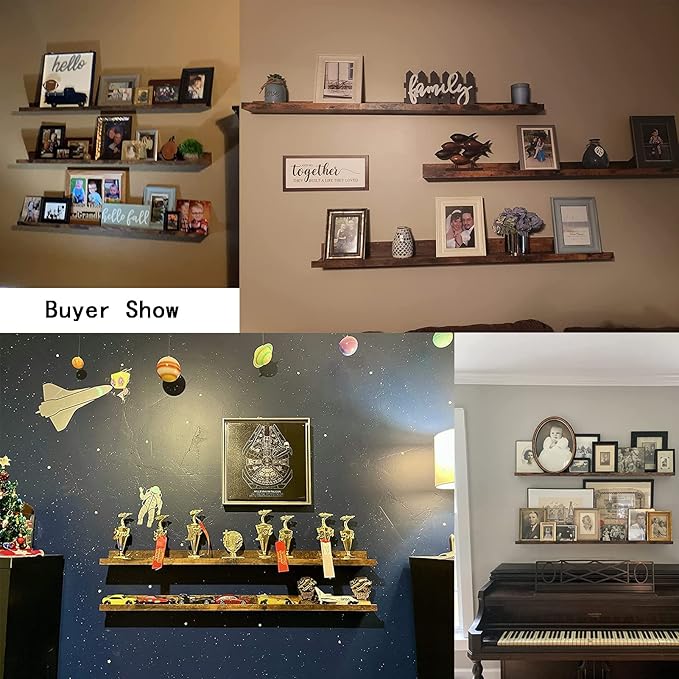 - MULTI-FUNCTIONAL WALL SHELF: As picture shelves, they can display your favorite arts and framed photos; As floating shelf for wall, they can display your collectibles, toys, awards, CD's, videos, small plants and another favorite objects; As wall shelfs organizer, it is a simple storage alternative that frees up floor and counter space.