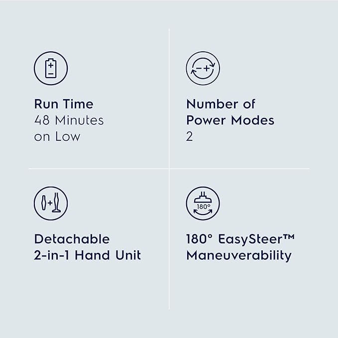 - Cordless Cleaning with Extended Power: Enjoy up to 48 minutes* of run time with the Turbo Power HD lithium battery, while the LED charge indicator conveniently lets you know when it’s time to recharge your Electrolux vacuum