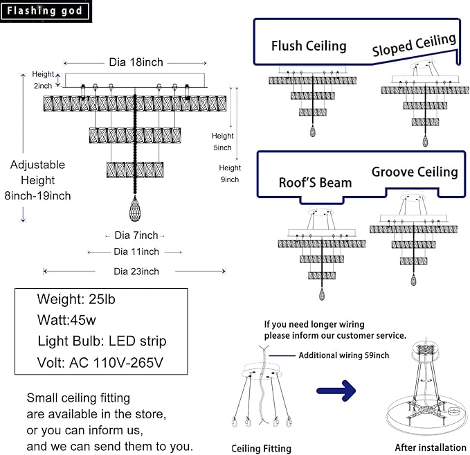 - 【Crystal chandelier material 】The crystal chandelier is made of premium K9 crystal,and strong stainless steel.