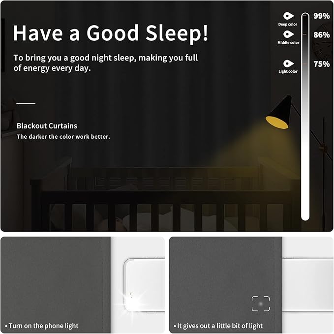 - Easy to Care: These blackout curtains are machine washable with cold water, please do not bleach, tumble dry on low, iron at low temperature if need.