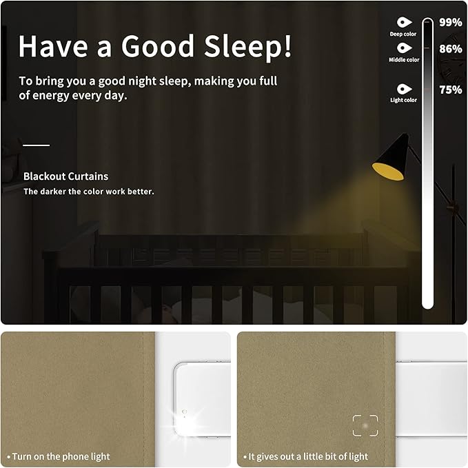 - Easy to Care: These blackout curtains are machine washable with cold water, please do not bleach, tumble dry on low, iron at low temperature if need.
