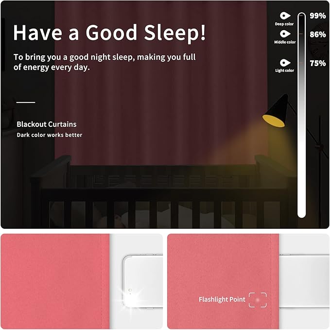- Multiple Functions: Our curtains can block out sunlight and UV ray ( Darker colors work better), insulate against summer heat and winter chill to balance your room temperature, cut down energy bills. Reduce outside noise, privacy protection, create a good working and sleeping environment for you.