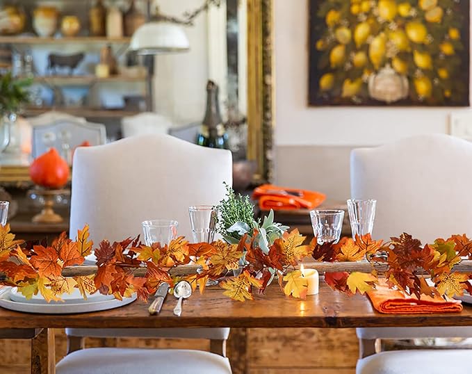 - 【Hanging Garland 】Maple leaf garland is perfect for Indoor, Outdoor, Autumn, Wedding, Door, Fireplace, Thanksgiving, Festival, and Dinner Party, as a kind of hanging plants, it can also decorate balcony, garden, wedding, table, swing stand, stair banisters, restaurants, office.
