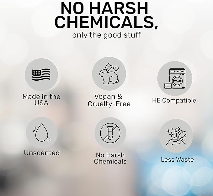 - YOUR CLOTHES WILL LOVE IT - We designed this concentrated blend of gentle washing detergents and natural fragrances to soften and reduce wrinkles and eliminate odors, stains, and dirt. Our high efficiency laundry detergent is ideal for everyday laundry, including cottons, linens, blends, and durable synthetics. It's also safe for whites and all colors, and you can use it in hot, cold, hard, or soft water.