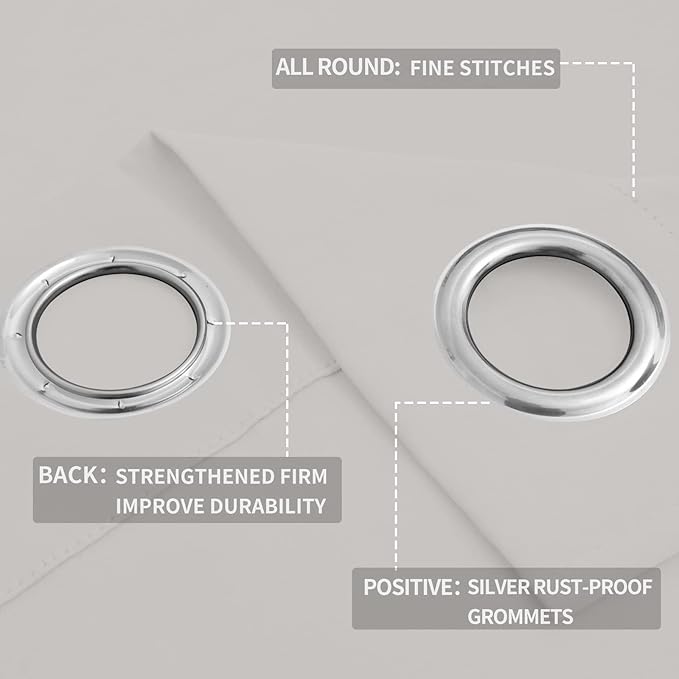 - Easy to Install: Each curtain panel has 8 silver metal grommets on top. Each grommet inner diameter is 1.6 inch, fits easily with standard curtain rods. Easy to hang, and slide smoothly. Perfect for office, bedroom, living room.