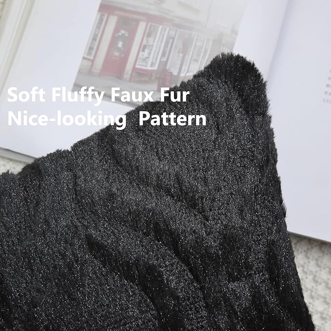decorUhome Fall Throw Pillow Covers 12x20 Inch Set of 2, Soft Plush Decorative Faux Fur Black Solid Couch Pillow Covers, Accent Farmhouse Neutral Lumbar Euro Pillow Cases for Sofa Bed Living Room