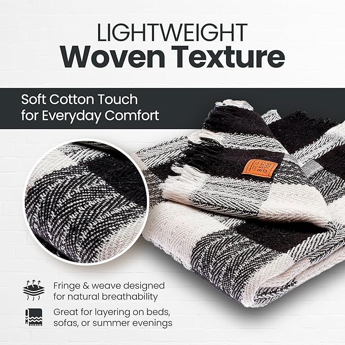 - LIGHTWEIGHT LAYERS FOR RELAXED MOMENTS: Woven from 100% recycled Turkish cotton, this breathable and cute throw blanket adds a soft, textured touch to your space; made for layering on the couch, tossing over your shoulders, or adding a laid-back look to your decor