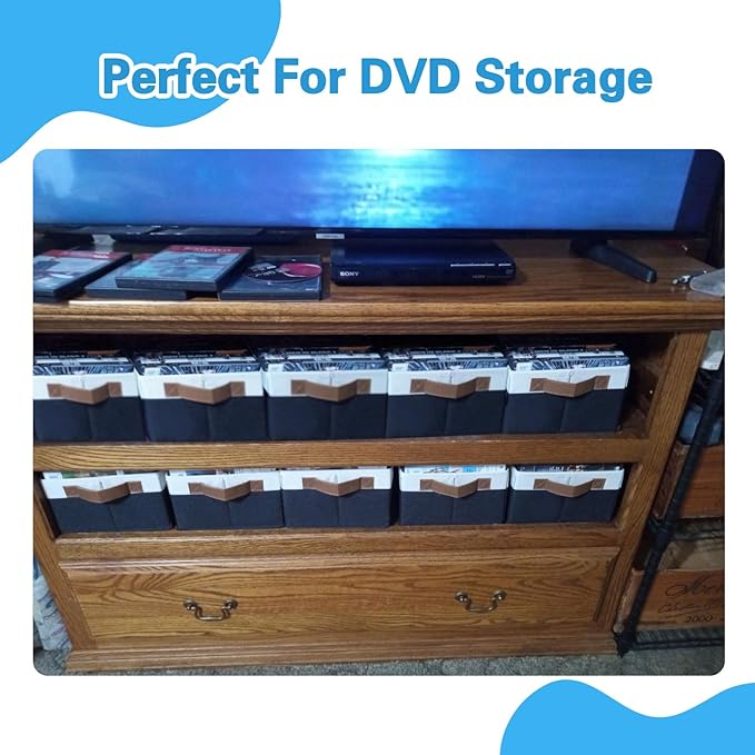 - 👍【FOLDABLE CD STORAGE BOXES】The DVD storage bins allows you to easily place it when not in use, just by pulling out the stiff bottom cardboard, saving space when not in use or transportation. They are quite easy to assemble, place the stiff bottom cardboard inside and it's ready