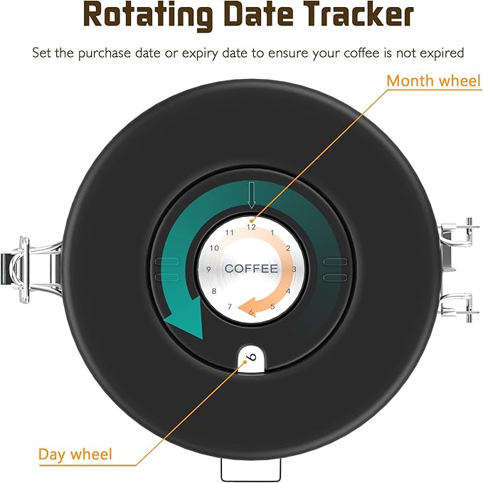 - 【Humanized design】: This coffee storage containers comes with a thoughtful design and an adjustable date tracking wheel above the container, so you can always check the storage date to know the storage time.
