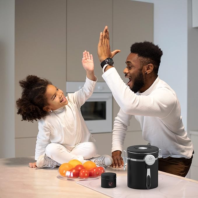 - 【Date tracking and airtightness】The coffee canister is designed with a lock, the lid is equipped with a silicone gasket, and there is a date tracking wheel on the top of the lid. The shelf life can be set when the coffee is loaded. The next time you open it, you will know how long it will be stored.