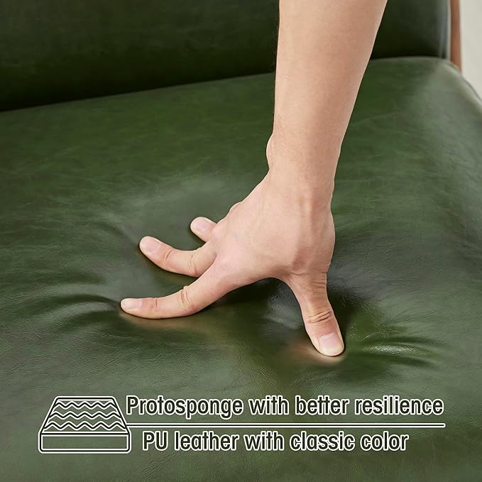 - Design: This vintage-look PU leather armchair is designed with a solid wood frame bringing the mid-century modern style to your home. Also the walnut color frame of this small space chair fits the solemn elegance of your room