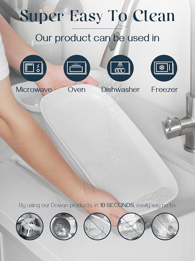 - STURDY & HEALTHY PORCELAIN: These DOWAN plates are made of porcelain, smooth glaze, an anti-scratch finish, drop, and shock-resistant. The rectangle plates are safe for dishwashers, refrigerators, microwaves, and ovens.
