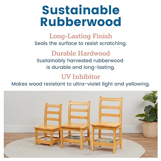 - Hardwood Chairs: Keep kids comfortable during seated activities with this 2-pack of school chairs with built-in storage shelf for books, games, and supplies; pairs with your child’s favorite table