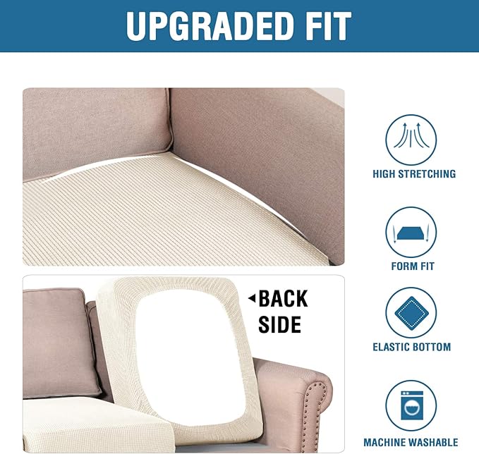 H.VERSAILTEX Super Stretch Individual Seat Sofa Covers Couch Slipcover Sets Thick Jacquard Textured Twill Fabric (2 Piece Medium Sofa Cushion Covers, Natural)