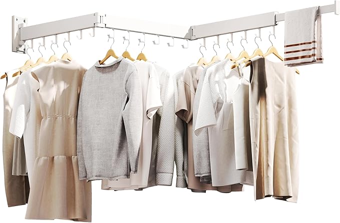 Clothes Drying Rack Wall Mounted,Drying Rack Clothing,Laundry Drying Rack Wall Mount,Collapsible Drying Racks for Laundry,Retractable,Foldable,Clothes Hanger Rack,Clothes Dryer Rack,White Color